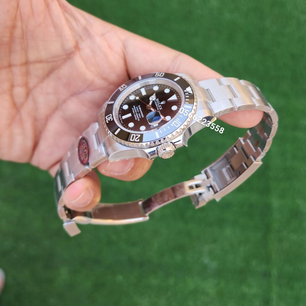 السير :فضيإطار :فضيالمكينة :أوتوماتيك ماسترعلبه وكيس مجاناضمان :سنه عل المكينة فقطالمقاس 41ممساعة رولكس صبمارينر ديت (Rolex Submariner Date) مصنوعة من فولاذ أويستر ستيل (Oystersteel)، وتتميز بمينا أسود وإطار دوار أحادي الاتجاه.