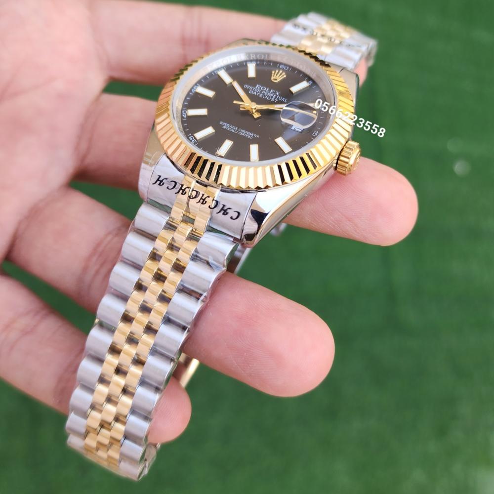 السير :فضي وذهبيإطار :فضي وذهبيالمكينة :بطاريةالعلبه والكيس مجاناالضمان :سنه عل المكينة فقطالمقاس 41مم